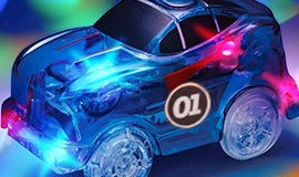Соединяя простые детали вместе, вы формируете свой особый гоночный трек – и каждый раз он может быть другим. А выключив свет – вы получаете чрезвычайно яркую гоночную дорогу, ведь Magic Tracks прекрасно светится в темноте!